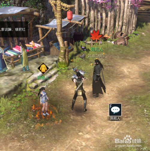 然后一直在三清山的这条路上逛,一般会出现在服装店老板附近。等出现异邦人后,点击头上的任务接受奇遇任务。