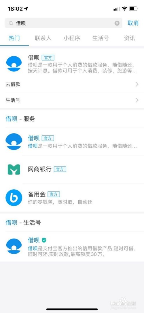 还是没找到借呗的入口,说明还未获取,用户也可以通过搜索借呗,进入查看是否获得开通资格