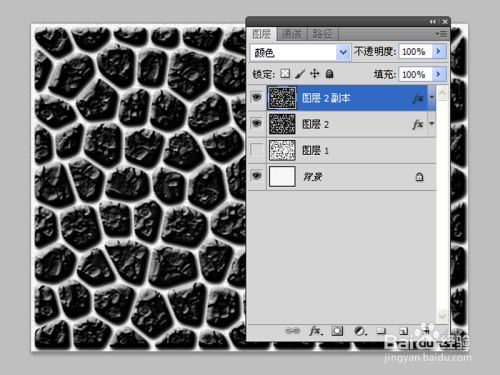 取消隐藏图层2,执行ctrl+j组合键复制一个图层2副本,修改该图层的混合模式为颜色,这样鹅卵石路面效果就制作完成了。