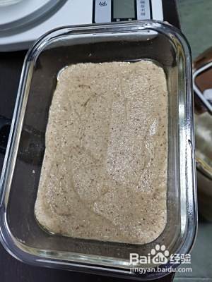 玻璃碗里面刷点橄榄油,倒入泥,震两下,去气泡封上保鲜膜,用牙签扎几个小孔