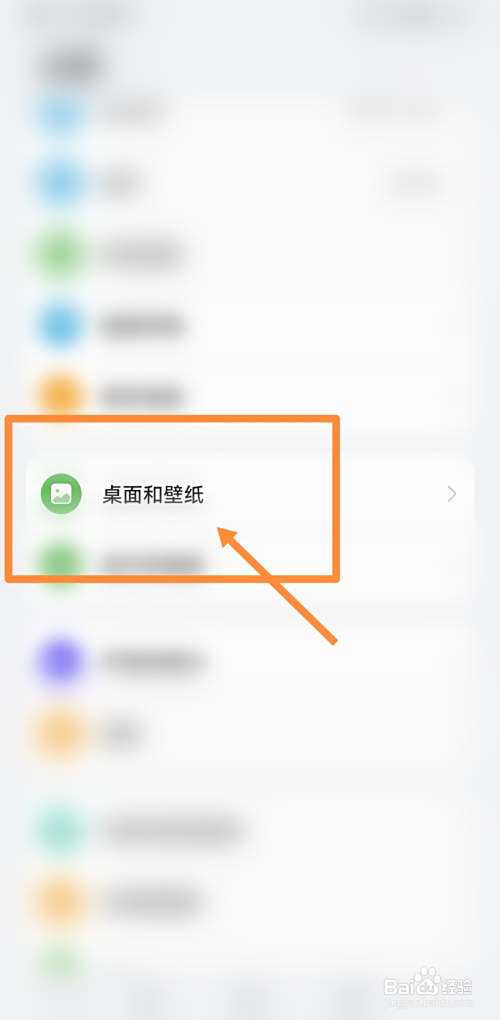 进入设置页面后,点击页面上的桌面和壁纸,如下图所示: