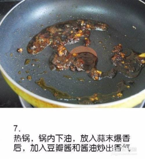 后,加入豆瓣酱和酱油炒出香气