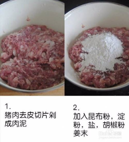 猪肉去皮切片剁 加入昆布粉,淀