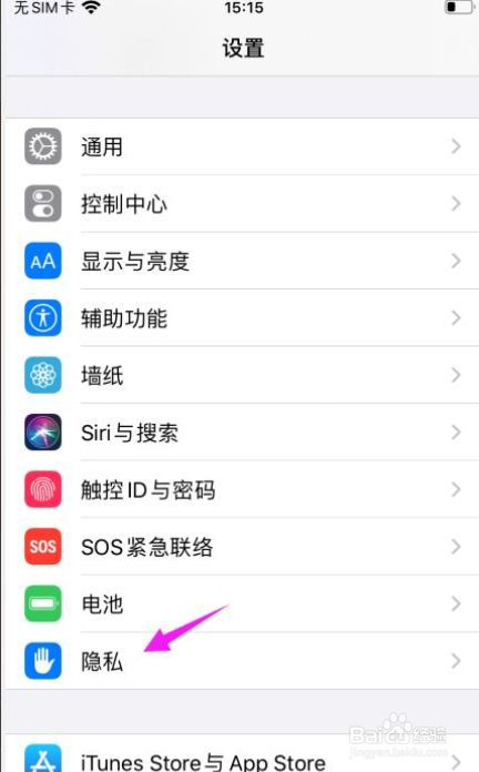 接着,第二步,看到设置里面的【隐私】,敲开。