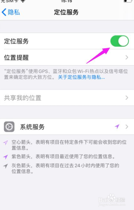 最后,第五步,把苹果手机的【定位服务】开启下。