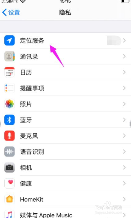 再然后,第四步,看到苹果手机的【定位服务】就是没启动的。