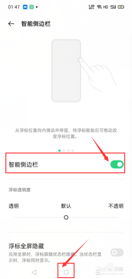 在智能侧边栏设置界面,我们将智能侧边栏的开关给打开,