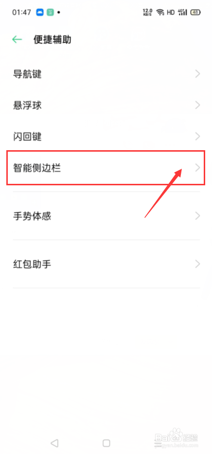 在便捷辅助设置界面,我们点击打开智能侧边栏按钮,
