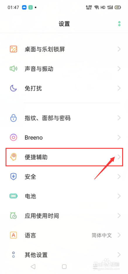 在手机设置界面,我们点击打开便捷辅助按钮,