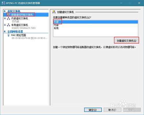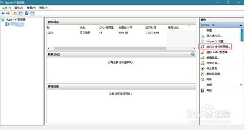从Hyper-V管理器进入虚拟交换机管理器界面
