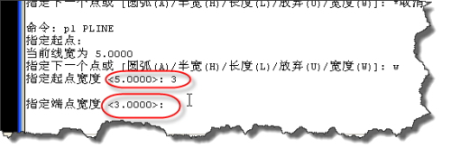 再输入W重新指定线宽,我这里将起点线宽设置为5,记住这个线宽要比刚刚设置的数值要大些,再将端点宽度设置为0,