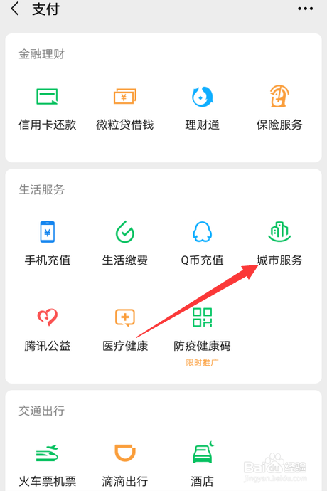 然后在支付里点击城市服务。