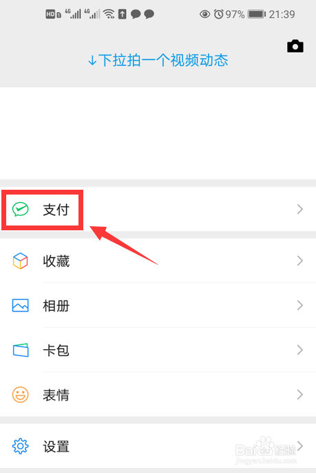 首先打开微信,在我的页面里点击支付。
