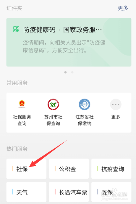 进入后,在热门服务里点击社保。