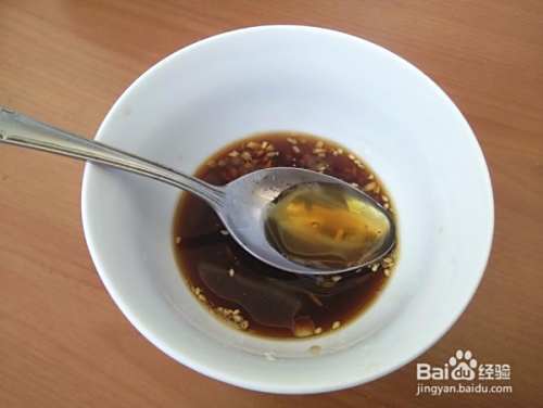 碗中加盐、胡椒粉、香甜醋、白砂糖、芝麻油调成料汁备用