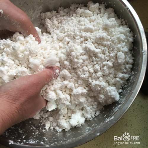 然后把面倒在盆里,倒上温水,搓成小团,如图上这样,不能太干也不能太湿,自己掌握吧!