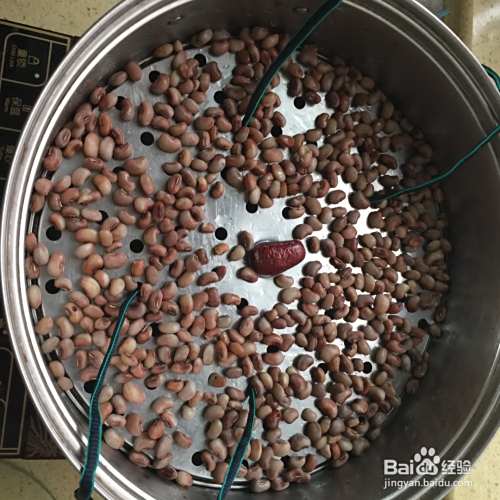 把锅坐在电磁炉上,大火烧开,同时放上红豆