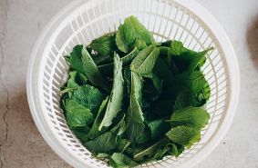 薄荷叶子摘下,洗净,然后甩干净或者擦干净表面水分,因为之后我们要炸制。