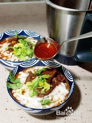 烧锅开水,切点芹菜叶,直接用原汤做汤底,粉煮热下到碗里,再盖上牛肉码子
