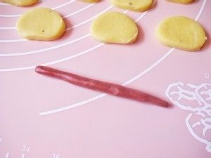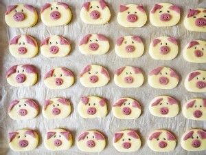 揪一点搓成椭圆,略微蘸点蛋液粘在猪脸上充当猪鼻。