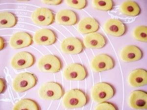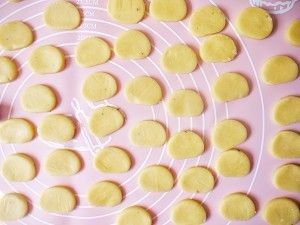整齐的码在烤盘上,此时烤箱预热165度。用牙签戳出鼻孔,再粘上黑芝麻当眼睛。