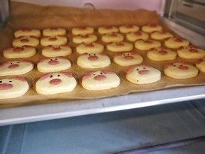 小猪仔饼干,一款很美味的小点心,无论是大人打发休闲,还是宝宝用来磨牙,都是十分不错的。无防腐无添加,制作简单、健康营养,有蛋香,造型小巧,口感松脆。小猪仔饼干中含有的鸡蛋是人类最好的营养来源之一,鸡蛋中含有大量的维生素和矿物质及有高生物价值的蛋白质。对人而言,鸡蛋的蛋白质品质最佳,仅次于母乳。这些营养都是人体必不可少的,它们起着极其重要的作用,如修复人体组织、形成新的组织、消耗能量和参与复杂的新陈代谢过程。小猪仔饼干制作简单,营养美味。