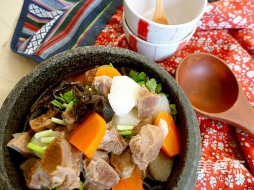 18加入木耳和盐后,炖制15-20分钟,直至胡萝卜、山药熟透;