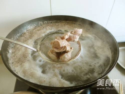 9在锅中热水翻花出,用漏勺捞出羊肉;