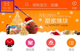 登录自己的淘宝账号,进来首页,找到左上角的“扫一扫”,如下图所示。