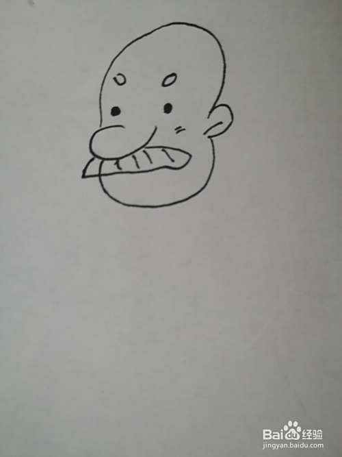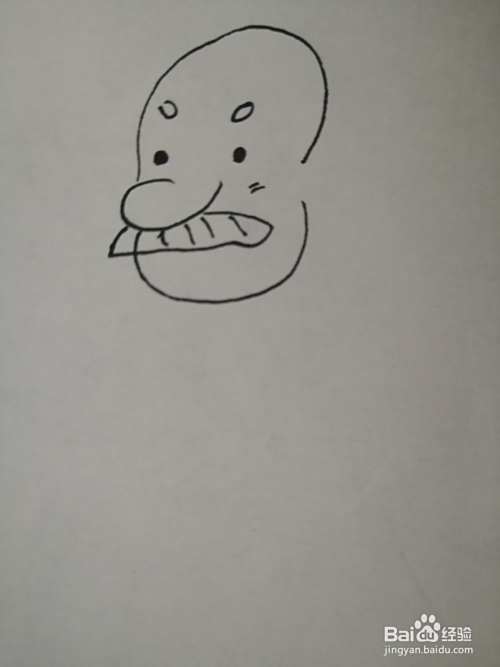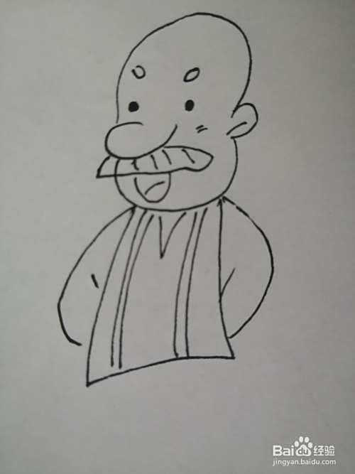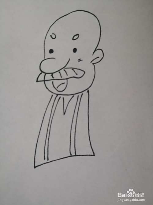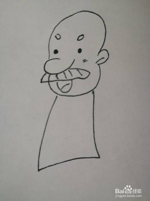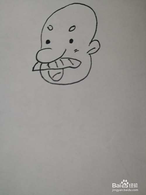 第四步,接着在简笔画老爷爷胡须下面画出椭圆形的小嘴巴和舌头。