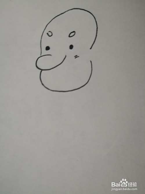 第二步,接着在慈祥的老爷爷的眼睛下面画出椭圆形的鼻子,鼻子画法比较的简单。