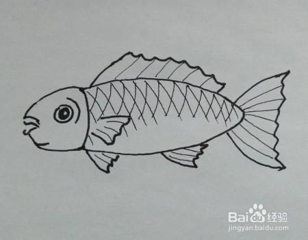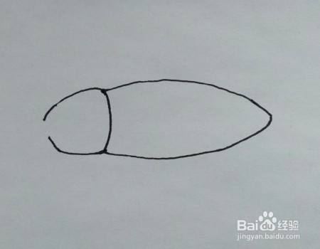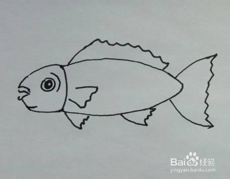 画一条弧线将鱼的头和腹部分隔开,如图所示。