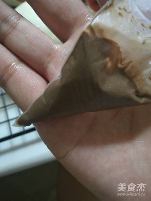 18隔热水融化巧克力,在裱花口顶端剪一个小口