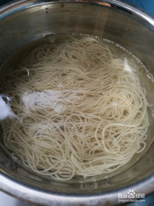 5, 粉条用水煮3分钟左右,捞出晾凉,切一下不用切太碎。