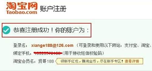 这时出现注册成功的页面,如下图,恭喜您淘宝账号注册成功了,可以去淘宝购物了。谢谢大家!