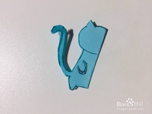 4.再将小猫咪爪子处,画斜线的部分,用剪刀剪掉。