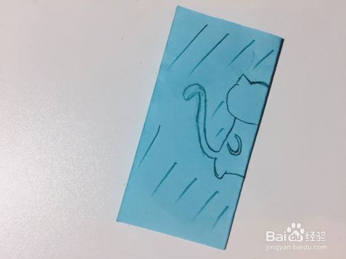 2.用铅笔或水笔在彩纸上画出小猫咪的图案,如下图所示。