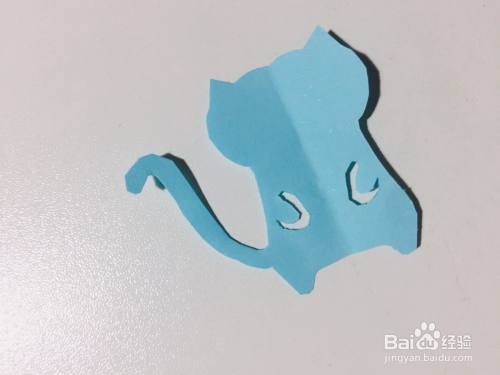 5.把修剪好的图形展开,将一侧的尾巴剪掉。如图所示