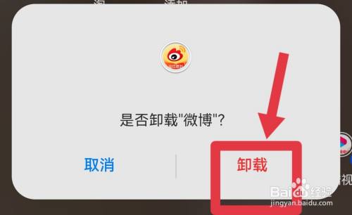 在弹出的菜单中点击卸载,会在屏幕下方出现新的窗口,点击卸载即可。