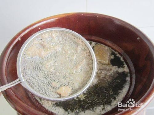 沙煲加入凉水,加土鸡块,大火烧开,水开后,并将上面的浮沫撇出后