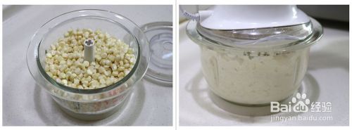 用搅拌机把鲜玉米打成米糊状。注意不加水,不加任何调料。
