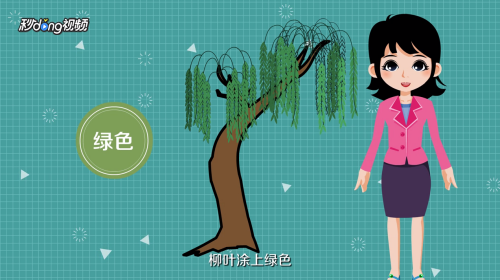 给树干涂上深棕色,柳叶涂上绿色即可。