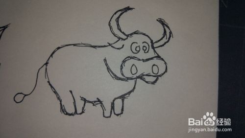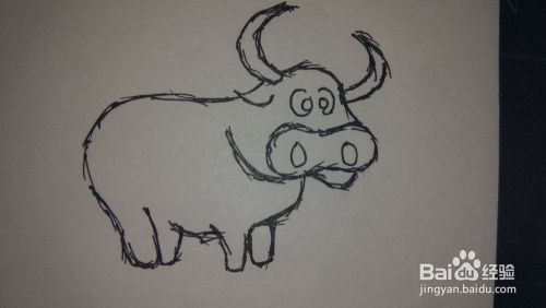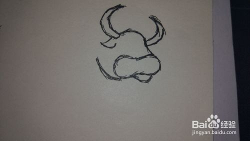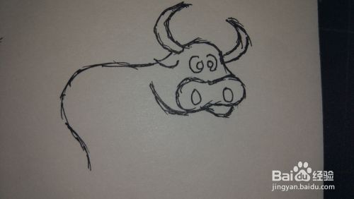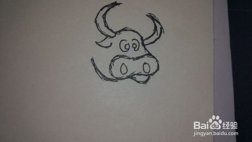 然后就是画牛的头部,画上鼻子和嘴巴的轮廓,还有两个耳朵。