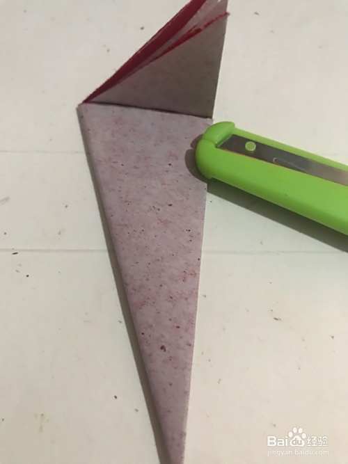 第一步 首先将一张长16厘米X宽16厘米的正方形红色彩纸 先把它从下向上对角折叠整齐
