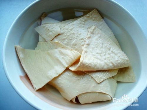 干豆油皮洗洗用凉水泡泡,直接泡到张开捞起来洗洗切片