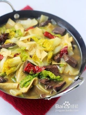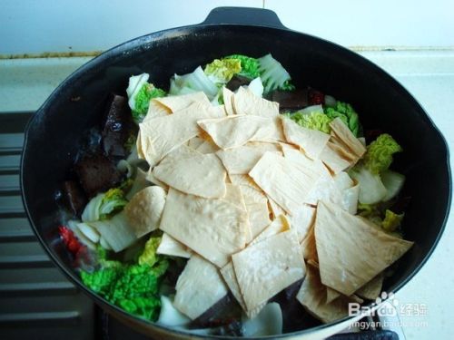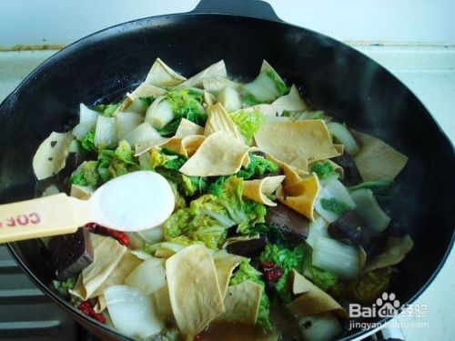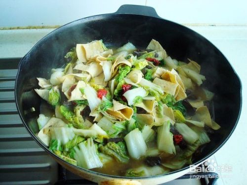 加加豆油皮翻炒均匀,中小火在炖10分钟左右,最好豆油皮和黄心菜吸收汤汁,黄心菜熟透