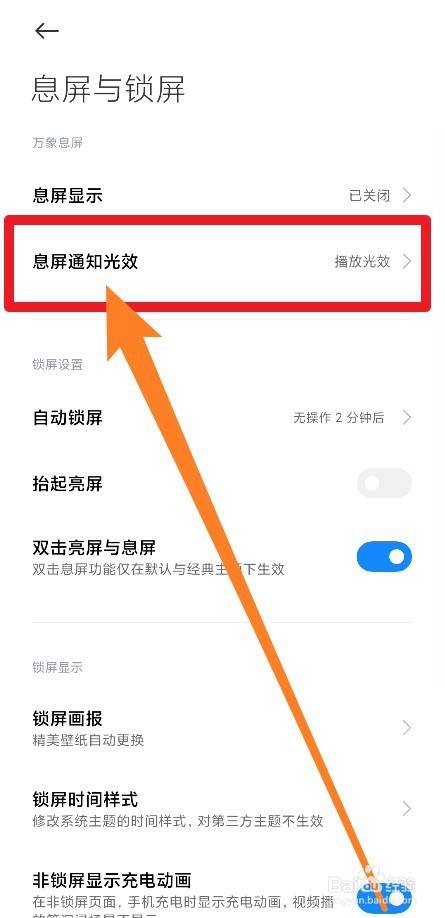 进入息屏与锁屏页面之后,我们点击【息屏通知光效】