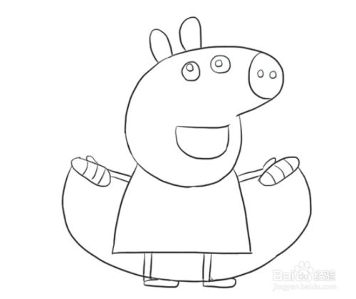 接下来,用一条弧线画出绳子,然后画好小猪佩奇的双脚。