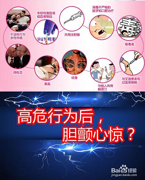 首先确认自己是否有高危行为,如 : 性生活比较复杂、男同性恋者、吸毒或是与他人混用注射器、曾被感染有艾滋病毒的针头或是血制品感染史、家中有艾滋病患者等。