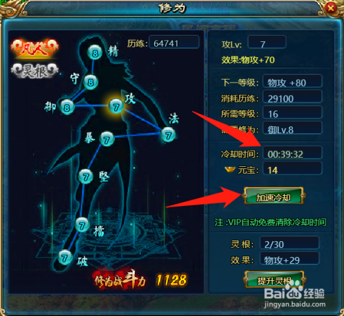 修炼后则进入“冷却时间”,也可以“加速冷却”,如图所示。
